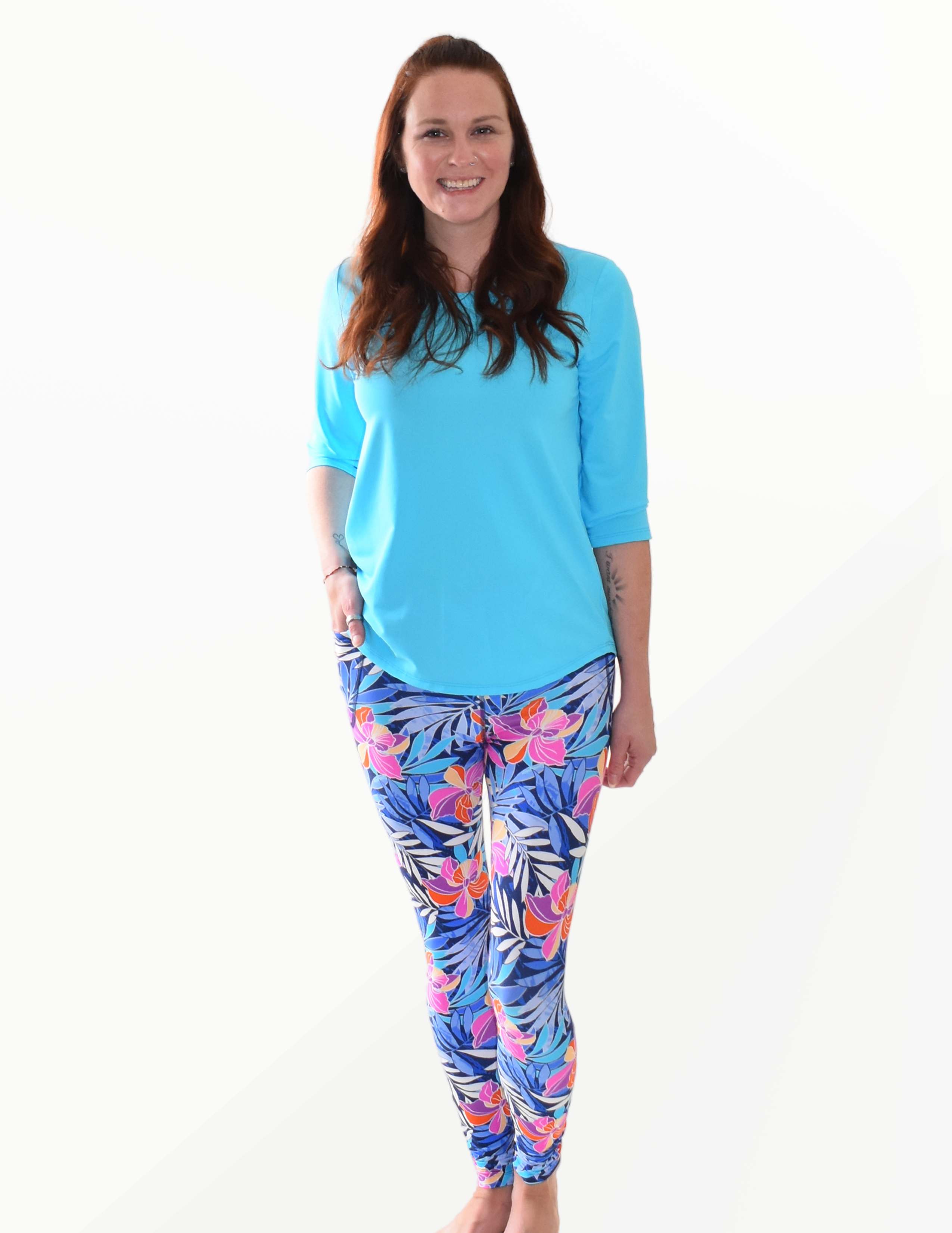 Our new leggings or built for power and speed! With a high waist and 2 side pockets they will keep you moving all day and add a little flair too!